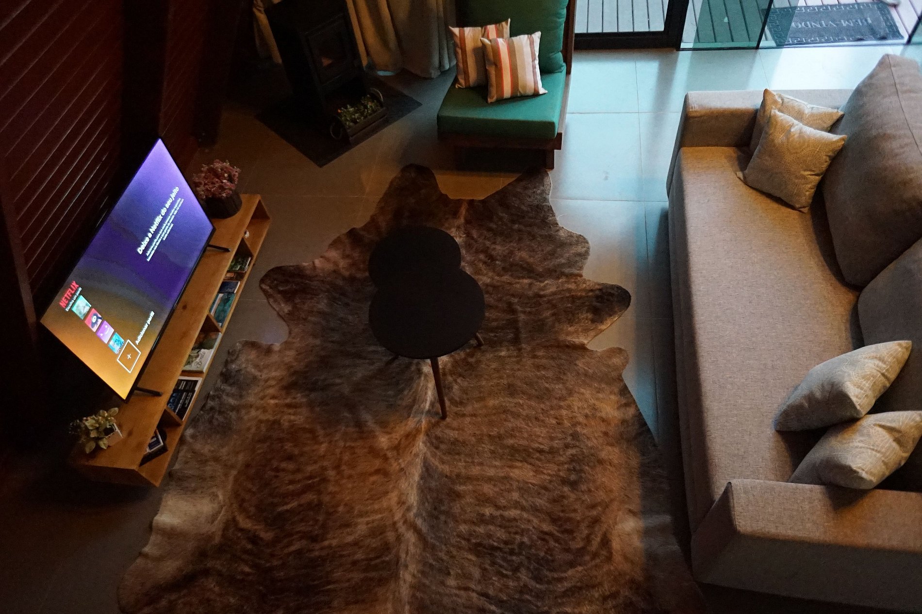 Para os dias mais frios, o chalé conta ainda com um fogareiro externo, ideal para curtir a noite em um clima aconchegante. Por segurança, o fogareiro não deve ser movido de local.