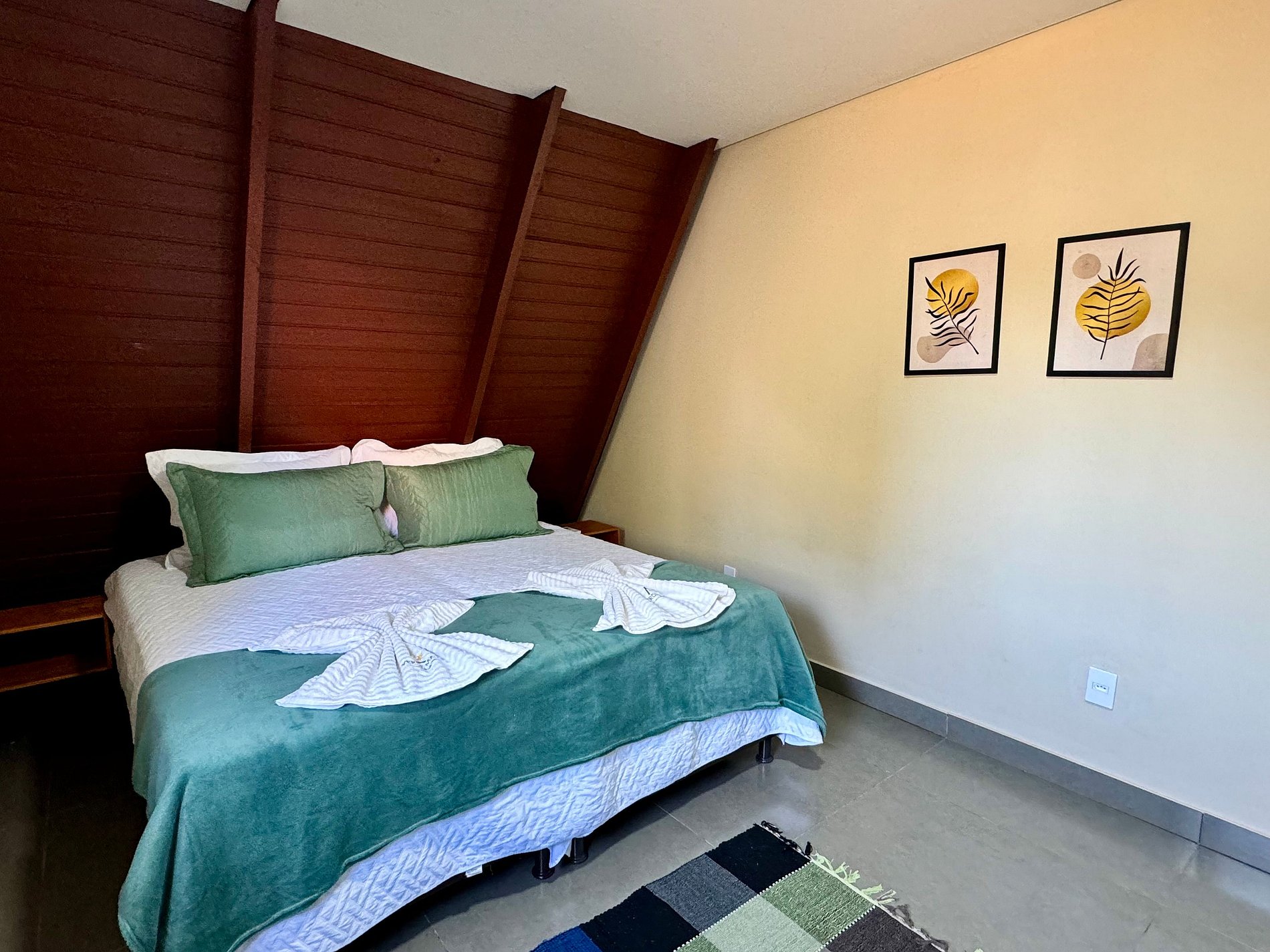 • Importante: são dois chalés idênticos, lado a lado, variando apenas a cor dos detalhes (amarelo e vermelho). É possível alugar ambos para acomodar até 10 pessoas com conforto — ideal para grupos maiores ou famílias que desejam proximidade com privacidade.