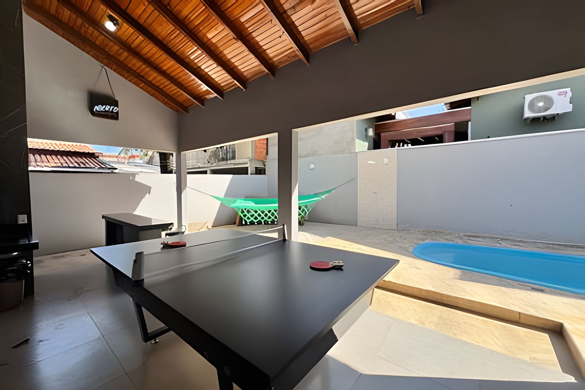 • Sala com sofá-cama, varanda com rede tamanho família e quintal amplo para relaxar.