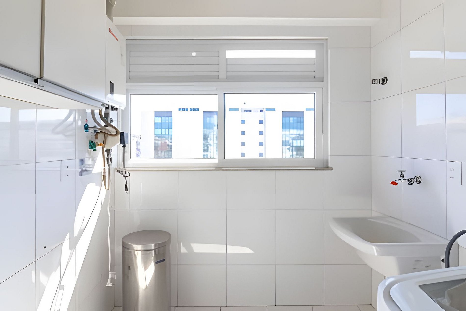 • Possui máquina de lavar roupas e varal suspenso.