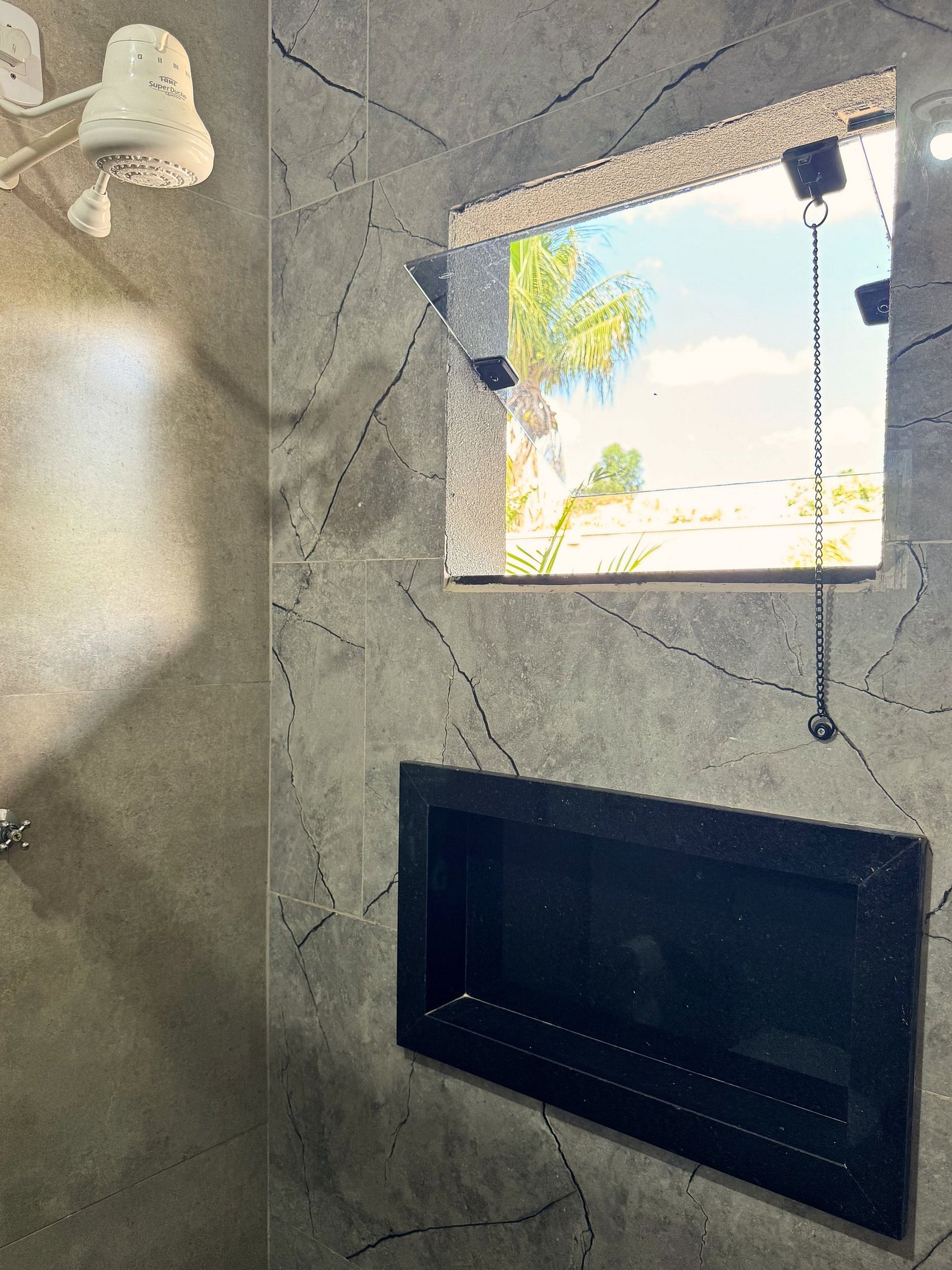 • O espaço faz parte de uma propriedade com outras suítes e uma casa principal, todas com acesso por um agradável quintal compartilhado. Na área comum, os hóspedes podem aproveitar piscina, churrasqueira, cozinha equipada (com airfryer e liquidificador), além de banheiros feminino e masculino de apoio.