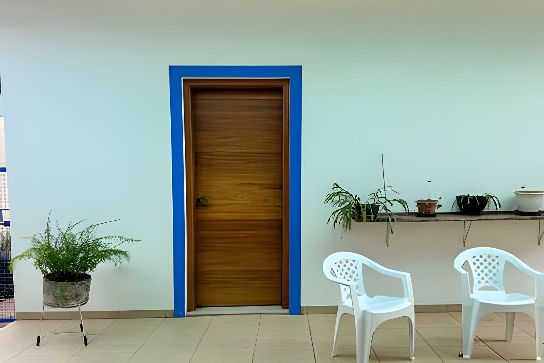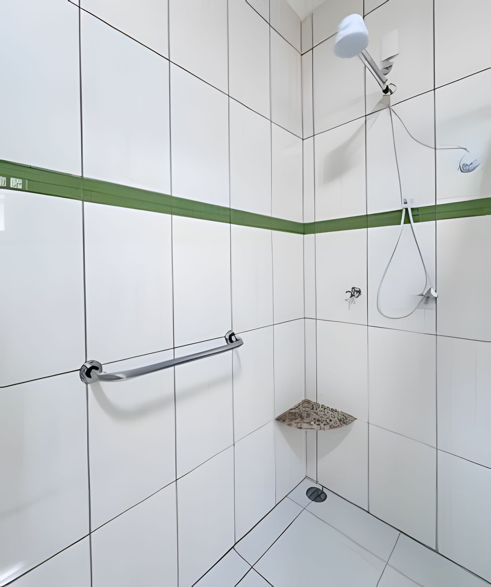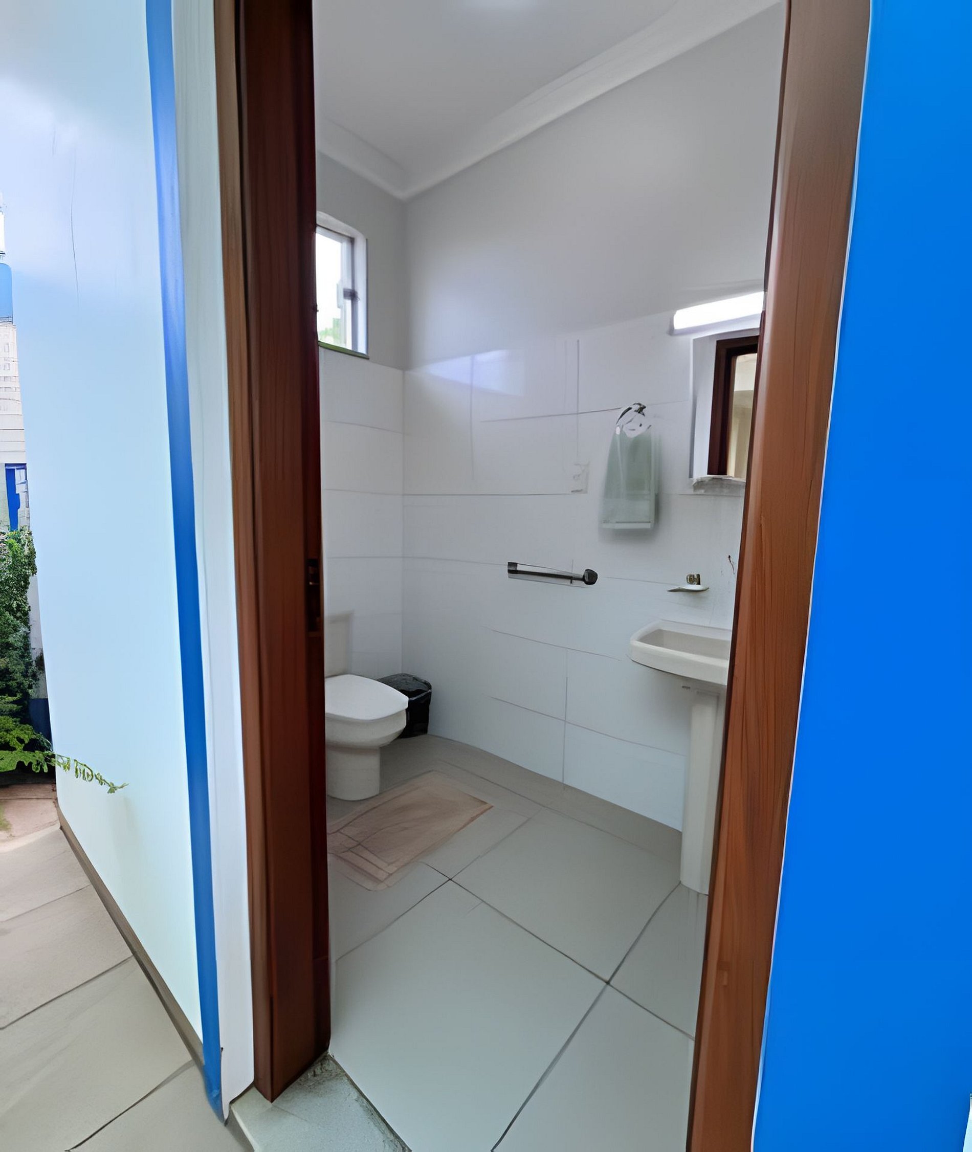 A casa é toda térrea, sem degraus, com portas e passagens amplas (80 cm ou mais), promovendo completa acessibilidade.