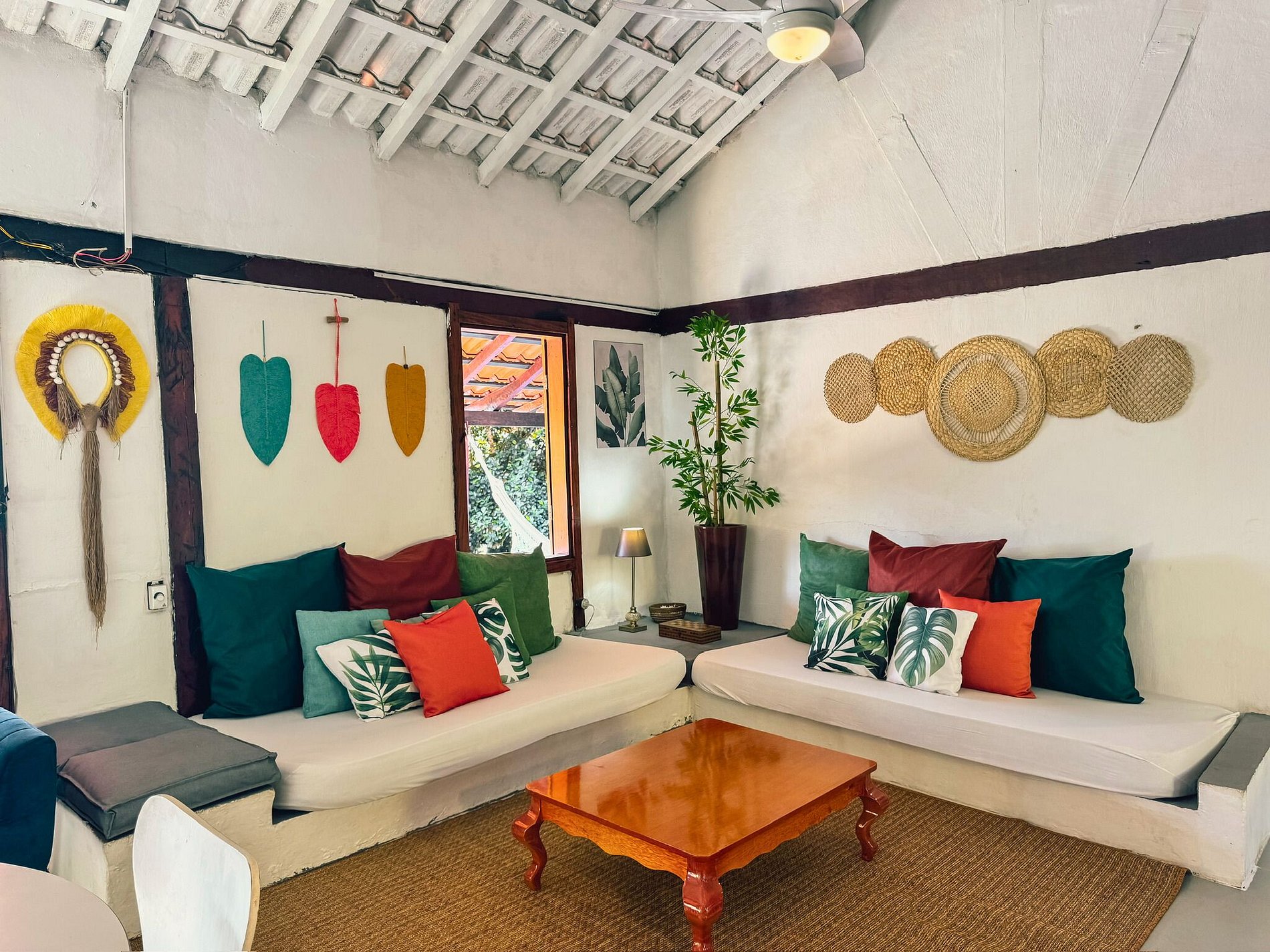 Sala ampla, iluminada e acolhedora