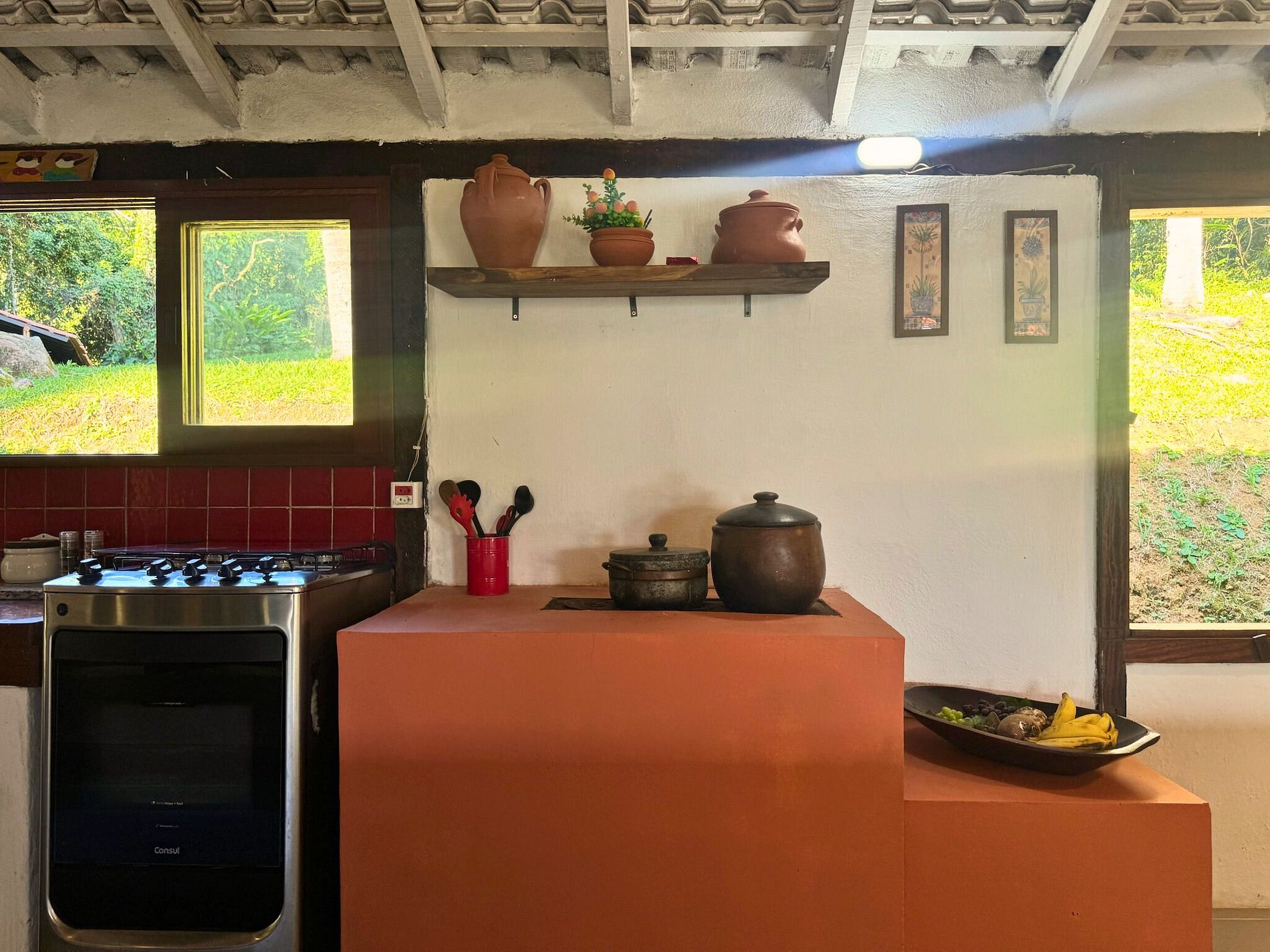 Cozinha equipada para cozinhar e receber