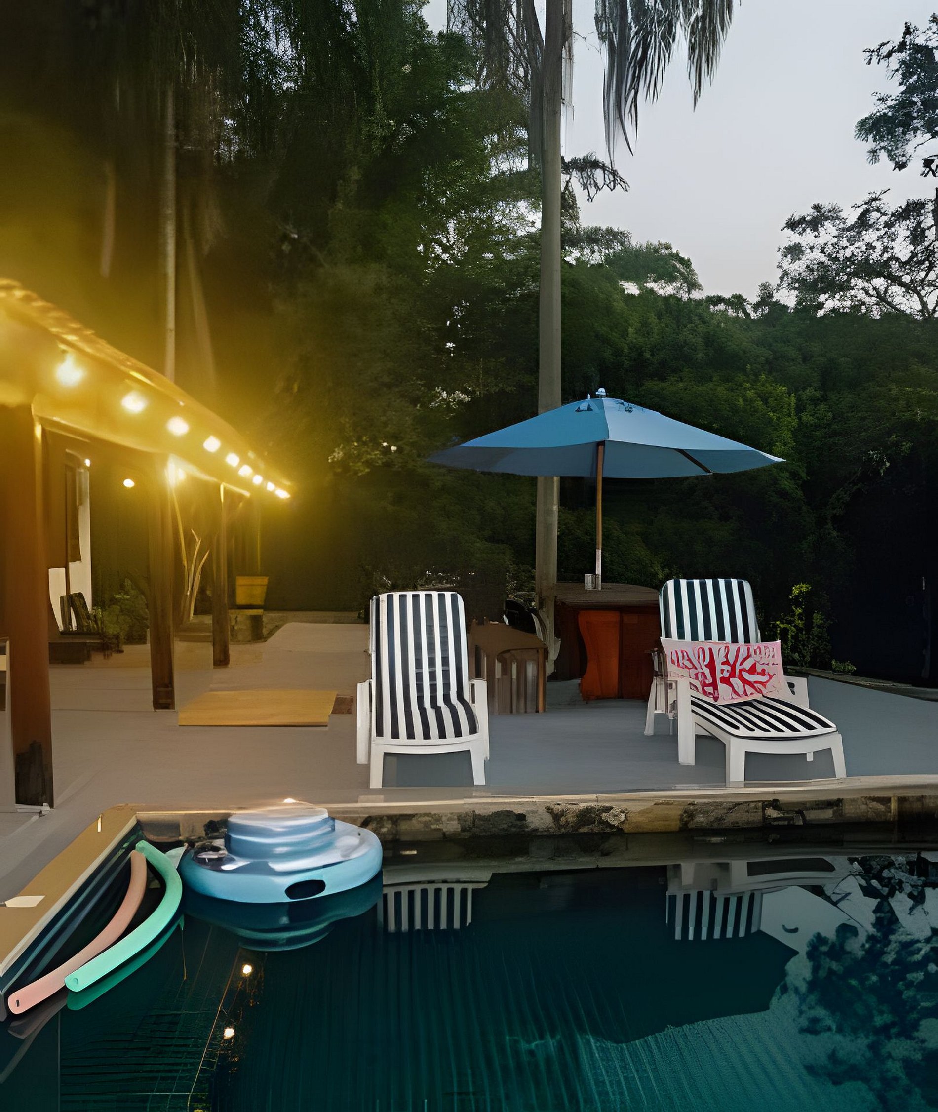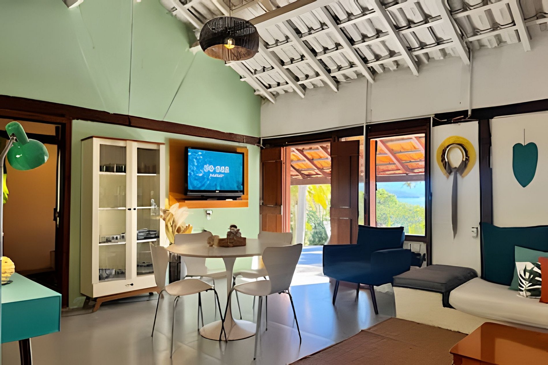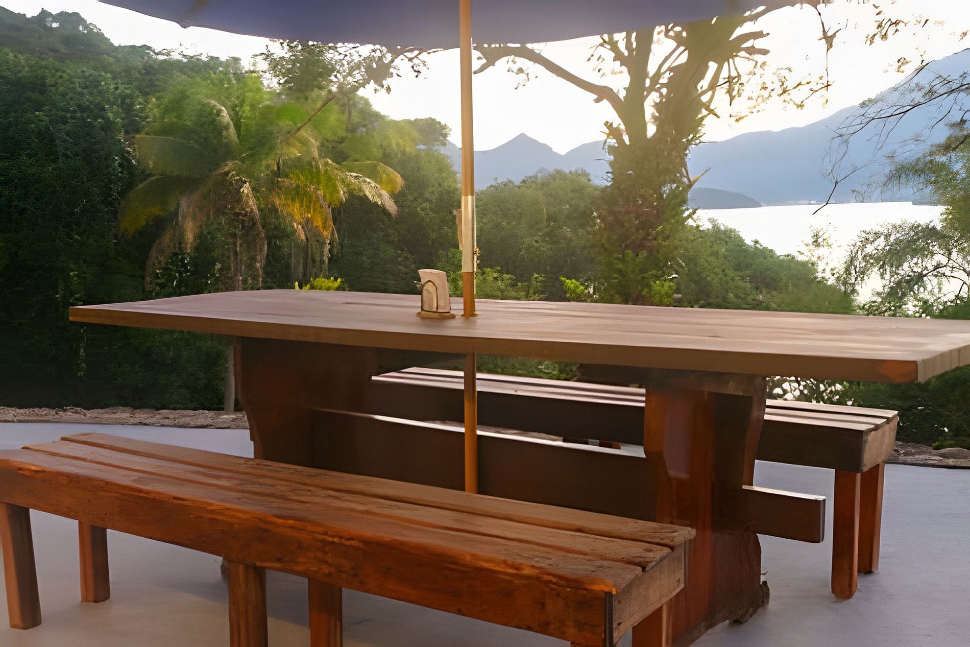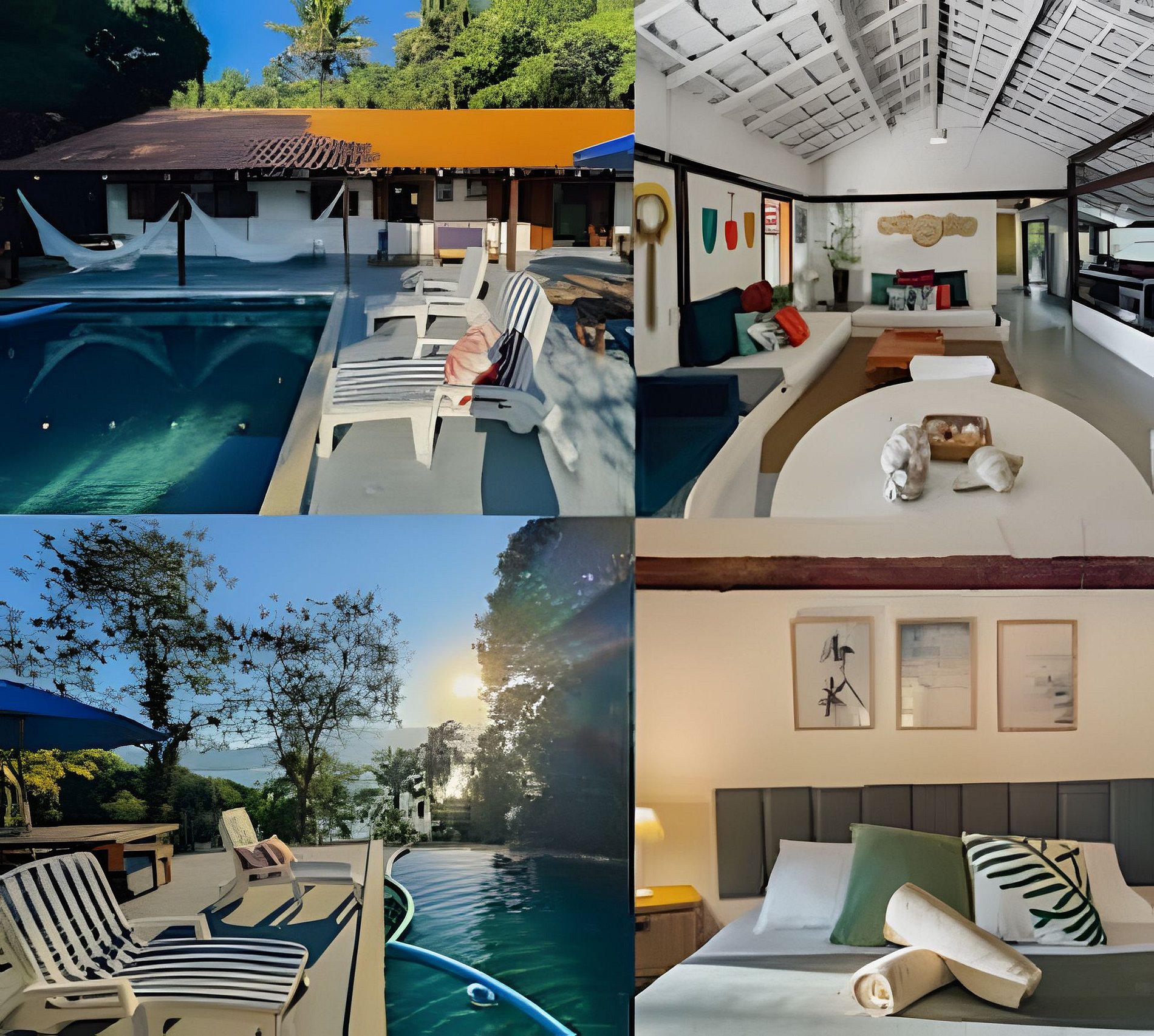 - redes, espreguiçadeiras, cadeiras de descanso e mesas na varanda, no quintal e no deque;