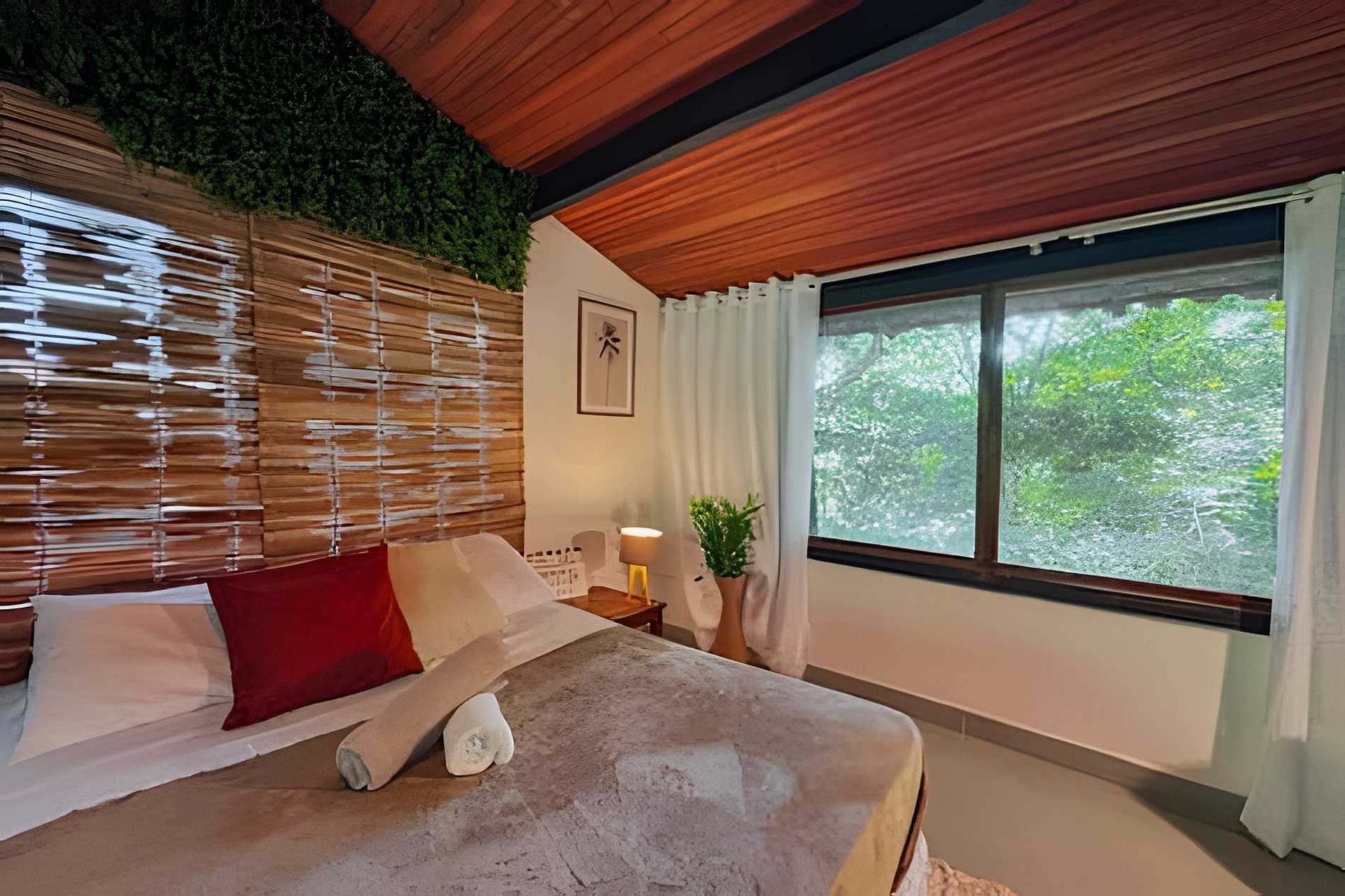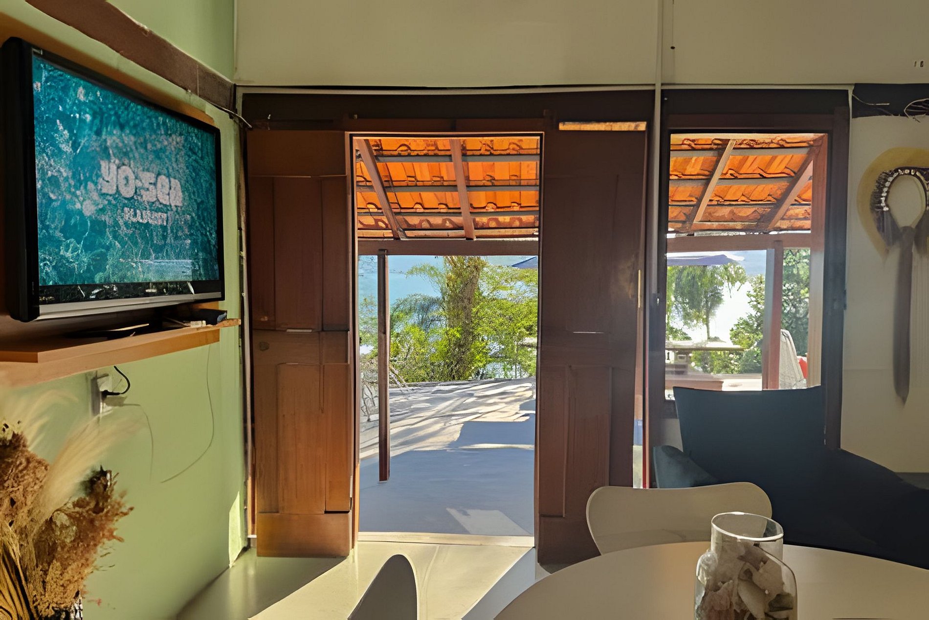 A casa principal conta com dois quartos com camas de casal, com dois banheiros (um banheiro ao lado de cada quarto), ampla sala e cozinha. Já o chalé possui uma suíte com uma cama de casal e uma cama de solteiro. A sala possui dois sofás com colchões de solteiro. Todos os cômodos possuem lindas vistas do mar e/ou da mata. Píer com acesso ao mar na frente da casa. Praia privativa na maré baixa!
